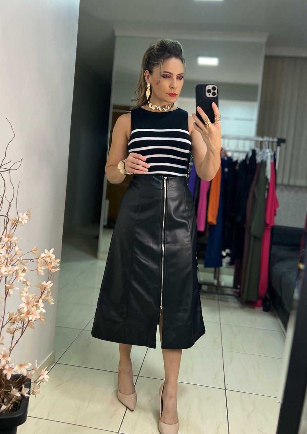 ¡Esa pieza imprescindible que combina actitud y elegancia en un solo look! La falda midi acampanada de polipiel es estructurada, cómoda y llena de estilo. Con la cremallera frontal visible, trae una propuesta contemporánea y potente, ideal para quienes aman la moda con personalidad.