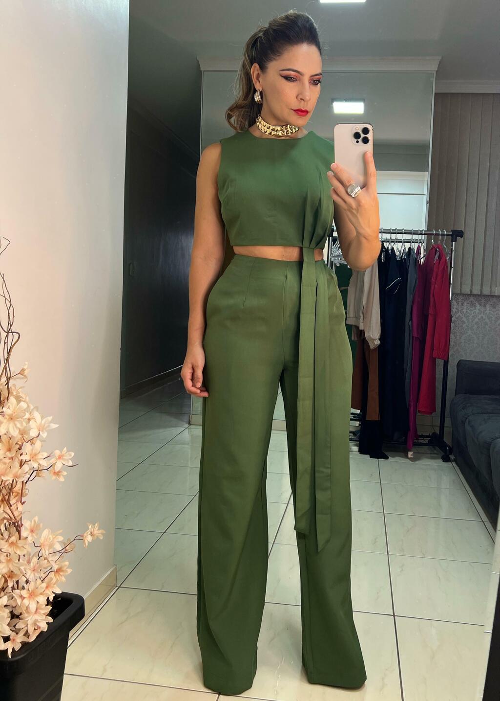 Confeccionado em crepe de alfaiataria, esse conjunto une sofisticação e conforto. A calça com detalhes tem modelagem reta e a blusa cropped conta com um detalhe de faixa na parte da frente, que valoriza a cintura e traz um toque moderno à produção. Perfeito para quem busca um visual alinhado, sem abrir mão da leveza.