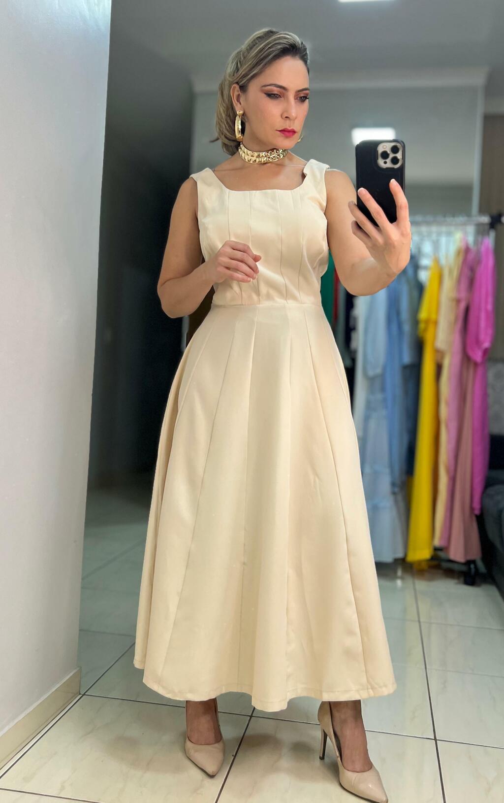 Este vestido midi feminino é a escolha perfeita para quem busca um visual elegante e versátil. Confeccionado em crepe com toque leve e agradável, o modelo se destaca pela saia evasê , que proporciona movimento e charme, e pelas alças largas , que oferecem conforto e sustentação. Ideal para momentos formais ou casuais com estilo.